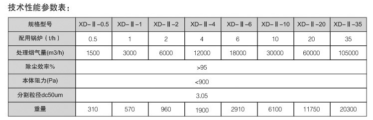 XD-Ⅱ型多管旋風除塵器是一種高效的除塵器,除塵效率可達95%以上,除塵器本體阻力低于900Pa,用現有的鍋爐引風機就能保證鍋爐正常運行。本除塵器負荷適應性好,在70%負荷時,除塵效率在94%以上, 它是工業鍋爐煙氣除塵和其他粉塵治理的理想設備。