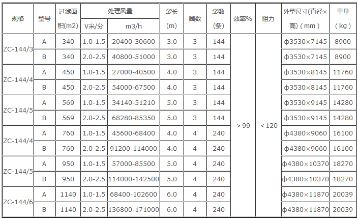 用戶選用應注意對溫度高,濃度大,顆粒細的粉塵應選用A型,反之用B型為宜,如濃度大于15克/米3前面應加一級旋風除塵器。