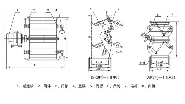 雙層電動卸灰閥又名鎖風(fēng)喂料機(jī),由減速器帶動傳桿通過曲柄、凸輪及連桿分別帶動上、下兩傳動軸旋轉(zhuǎn),交互開啟,通過配備的杠桿系統(tǒng)或拉伸彈簧,保證閥板可靠的復(fù)位,防止野風(fēng)吹入,依確定的開閉頻率完成系統(tǒng)的給卸料。該機(jī)結(jié)構(gòu)緊湊,工作平衡可靠。廣泛適用于建材、冶金、化工、電力等行業(yè),作為各類除塵設(shè)備的 灰斗卸料裝置及各種磨機(jī)、烘干機(jī)、料倉等設(shè)備的給卸料裝置。